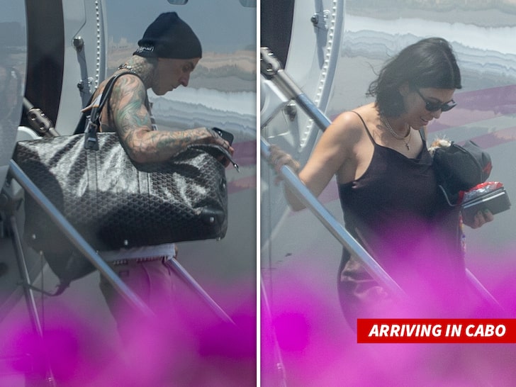 The news was first reported by TMZ, which obtained exclusive photos of Barker, 45, and Kardashian, 42, boarding the flight and departing the plane in Cabo. Kardashian was sporting a new bob haircut after revealing Barker had cut off nearly one foot of her hair in July.