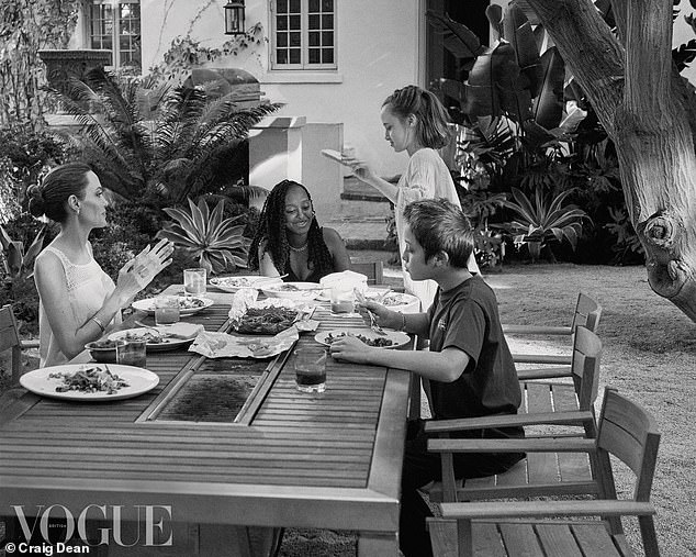 Jolie poses with her children in the home in the March issue of British Vogue, available on newsstands and via digital on February 5.