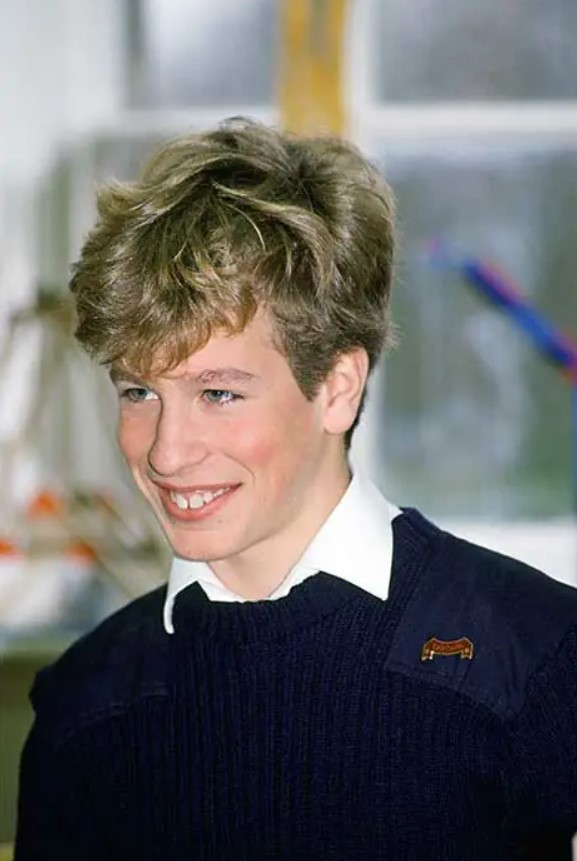 Peter Phillips is Queen Elizabeth’s oldest grandchild. She made a special visit in 1991 to go see him at Port Regis Prep School in Dorset. He was only 13 at the time, and this photo perfectly captures his awkward attempt to smile like the world is watching.