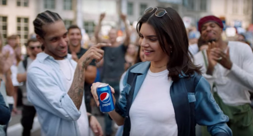 In April 2017, she starred in a Pepsi ad that depicted #BlackLivesMatter protests. In the ad, protestors have taken to the streets and are approaching a wall of grim-faced police officers. But the officers smile and the protestors cheer after Kendall gives one of the policemen a can of Pepsi.