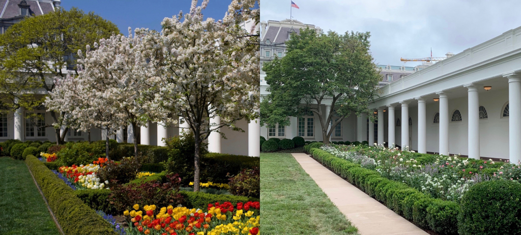 So far, so good, right? But the main cause of renovation controversy is that Melania Trump removed the crab apple trees that were part of the Rose Garden since the days of JFK’s presidency. Additionally, her renovation changed the vibrant color tones of the old garden into a muted series of pastels.